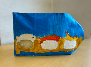 子どもたちは真剣な表情で、お米の袋に思い思いの絵を描きます。カラフルな動物やキャラクター、そして元気いっぱいの言葉。袋の裏には、おじいちゃん・おばあちゃんへ向けたメッセージも添えました。きっとお届けした時に、大きな笑顔になってくれることでしょう。