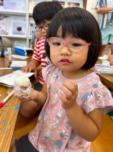 絵を描き終えた後には、5ツ星お米マイスターからの小さなおむすびプレゼント!
